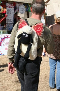 100 % wool. WAIT! How did HE get into this gallery? Okay, I guess the sheep has wings, so it counts as a Faerie. But what is that guy doing with the poor sheep tied onto his back? Set the sheep free, Man!