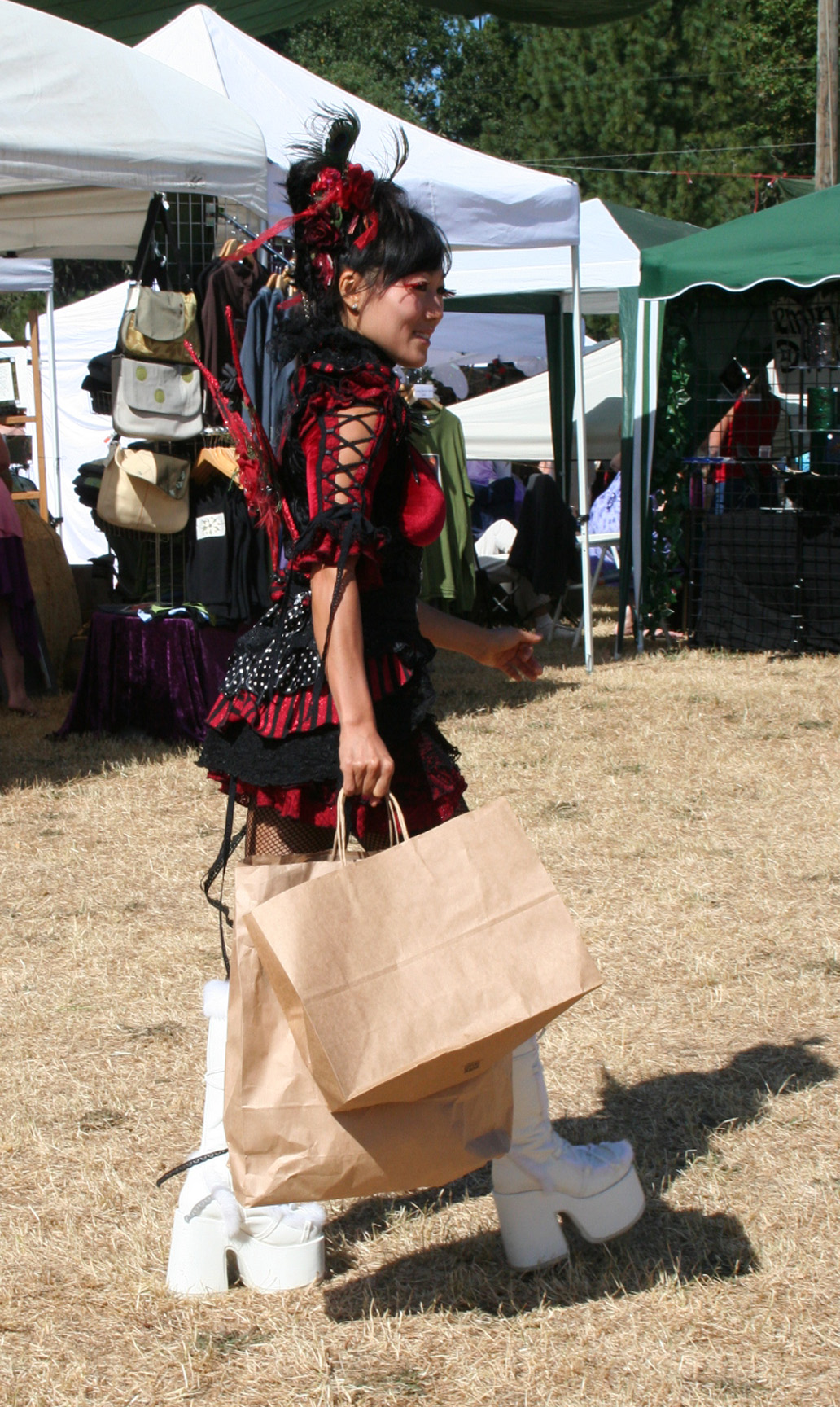 The reason I have included it here is because I decided that I really didn’t find these costumes so offensive as I found them a bit bright and over-stated. But, taken with the whole of their booth, the mannequin, and their smiles – well, they grew on me. I rather liked their choice of costumes and I thought that they were actually pretty decent. And I concluded that it is time we skinny people give large people a break. So I give this last photo to you in tribute to all my larger-than-life friends: if you want to find your inner faerie, be bold!