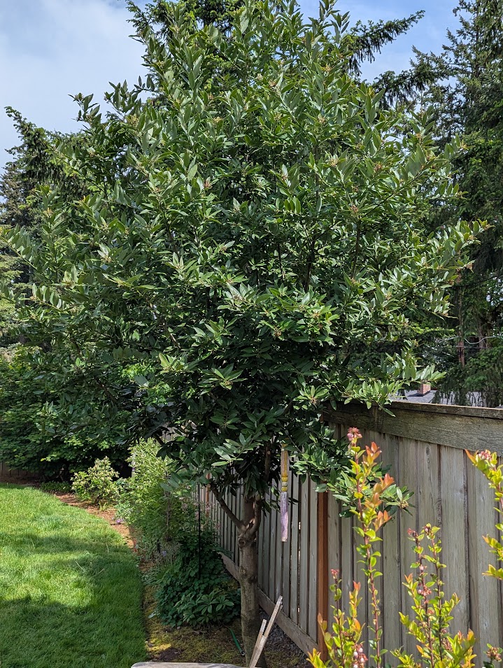 The birds planted this. I fell in love with it. I trim it up and will allow it to grow, It is not the same as a Bay Laurel, but it smells the same and you can use the leaves the same. Pretty yellow flowers in the early spring. Easy keeper.