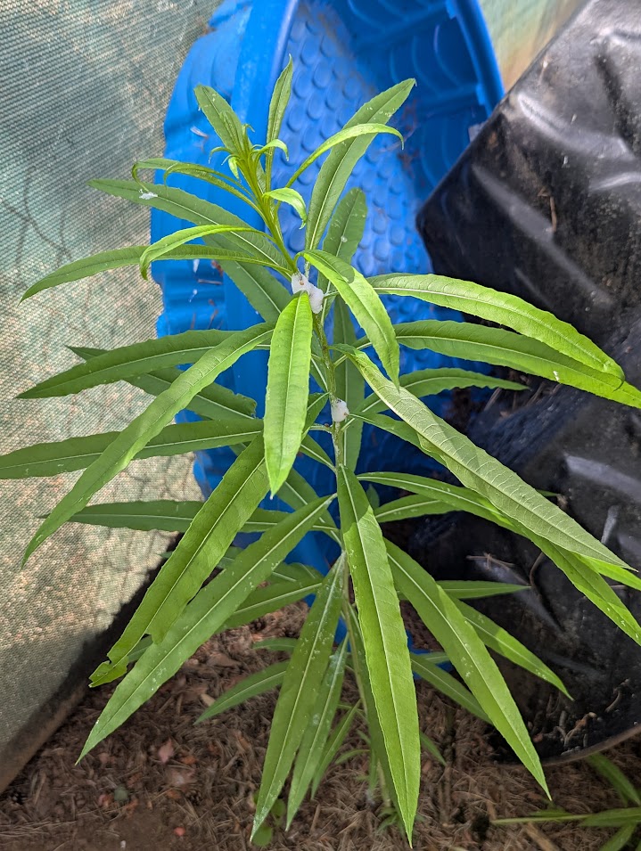 I have seen this for sale at garden shows. That factoid makes me laugh: fireweed is invasive. Once you have it in your yard, you will never get rid of it. I know: I planted it. And I ripped it out. It is pretty, I will grant you that. Alaska’s State flower (my daughter tells me that you can tell when winter is near because the fireweed quits blooming in Alaska). It blooms all summer. I found this survivor of the fireweed I killed nearly ten years ago (hahaha!) hiding behind the shed. And I am letting it go because it is better than English Ivy, black nightshade (Solanum americanum), and Himalayn blackberries – all of which we also have (only the nightshade is native).