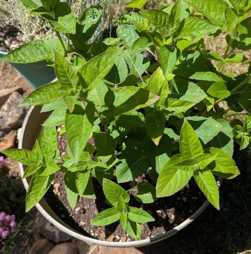 I hope you know what plant that is without the ID below it: run into this without enough clothes on and you’ll wish you had never met it. I crawled into it once when I was a child. Nettle stings all over my face! Fortunately, the damage is never serious and the sting can be dealt with (in my case, I probably smeared mud all over my face. I was a clever child – HA!). I started growing it for the medicinal benefits of nettle tea. It is in a pot so it doesn’t escape into the yard and I deadhead the flowers before they produce seeds: this is all the nettle I need in my yard. Harvest with care: garden gloves, long sleeves. I dry the leaves in the dehydrator instead of hanging them to dry. I’ve read you can cook the leaves as a spinach substitute (I’m not fond of cooked spinach except on pizza). The leaves lose their sting when dry. I mix the leaves with feverfew and yarrow for a green tea that I can drink without sweetener.