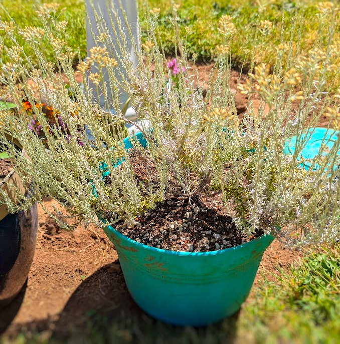 Curry plant (Helichrysum italicum): We bought that for the aroma, the sage colored leaves, and the pretty flowers. Curry plant is not the same as the spice curry which is a blend of spices, but it smells like the spice. It has minimal uses in the kitchen as an edible as it only imparts a very light curry taste to food.