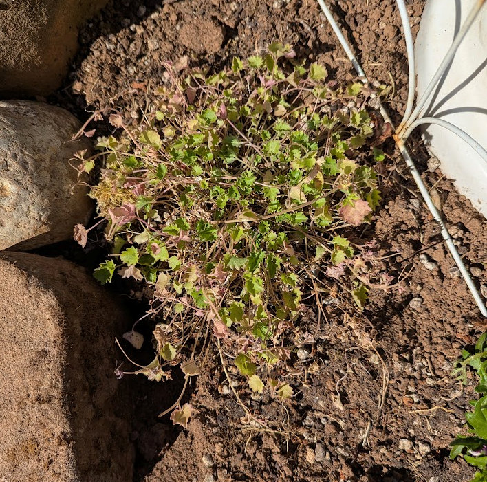 Tiny pinks on long stems. This mallow started life in out garden as a tiny free specimen. I put it in a planter and it thrived. Moved it into the ground and it nearly died. It is in a large planter, soil mixed with sand, and it is happy once again. It is a bee favorite & common on the Coast.