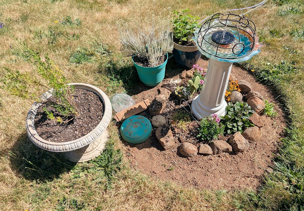 Still and all, I planted my herb plants out front. Spread some early seeds out as well (we’re pretty much past the last frost date – we hope). I need to edge my new beds. Plants need to grow a bit. The yard art is just what I do: I consider it “faerie gardening” and hope it entices some of those wee creatures along with the pollinators and birds. You never know.