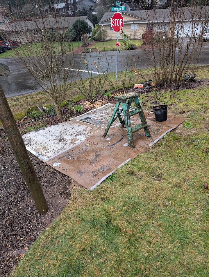 My battle against invasive plants is slow and deliberate, executed with extreme caution: I have a liquid herbicide that I apply with a paint brush on the newly cut stems of offending plants: Himalayan blackberry, the neighbor’s flowering fruit tree that insists on shooting up starts in out yard, and a few miscellaneous “weeds”. It has to be done when the sun is out for several days in a row and protected from the curious nose of our doggo.