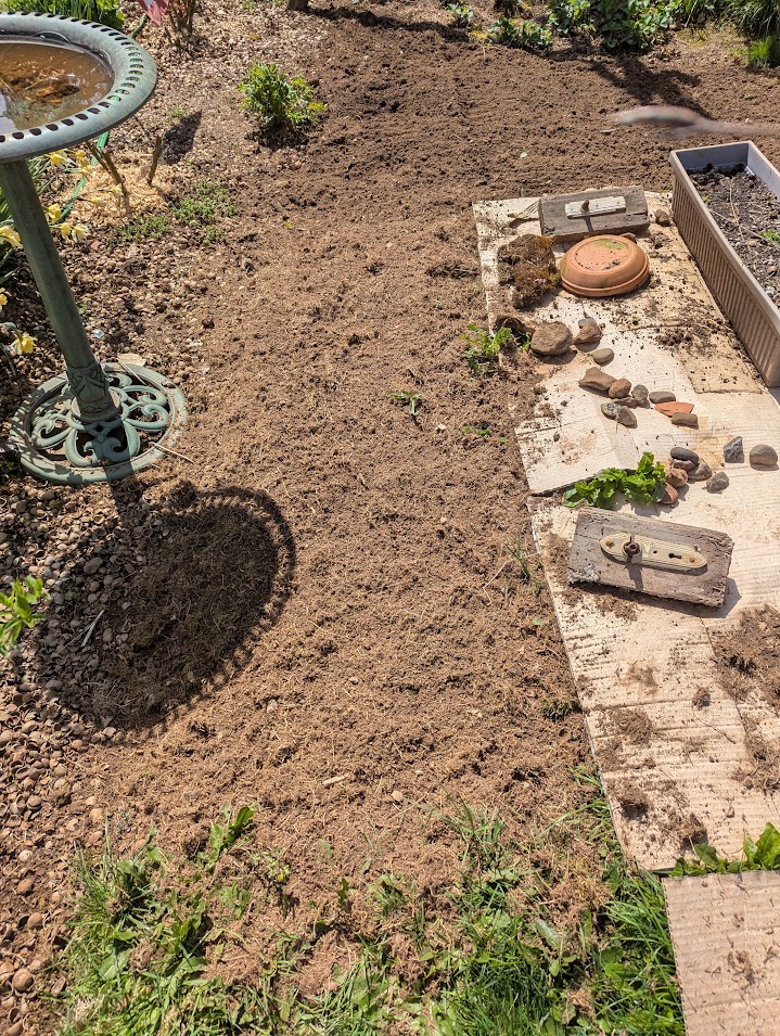 Me, me, me. And I’m only bragging about it because I will be 69 years old in a week and I’m still playing in the dirt and digging holes. Also, the birds already love it.