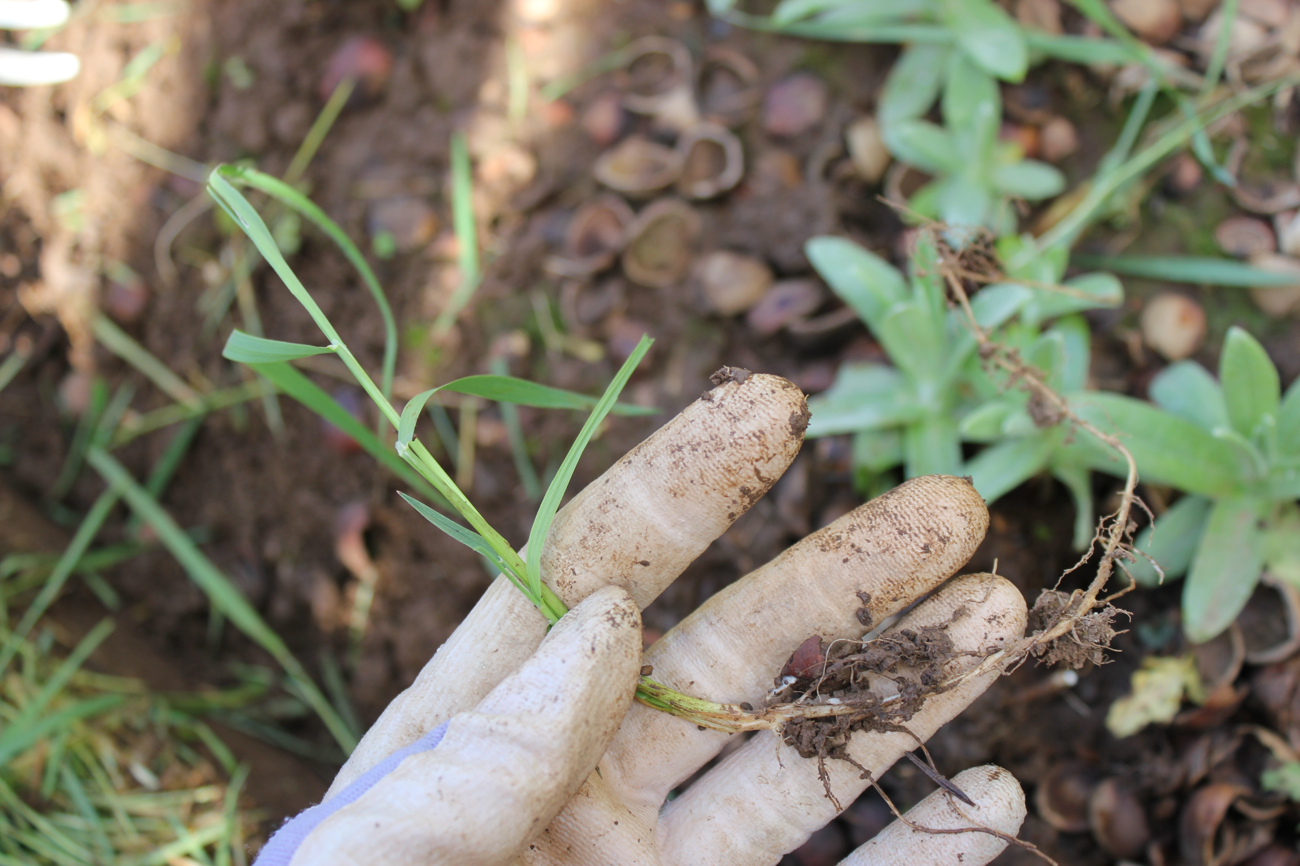 Unfortunately, milkweed does nothing to impede the growth of grape hyacinth, I don’t think anything short of a heavy-duty herbicide affects grape hyacinth (and I refuse to go that route). Every year I pull several hundred bulbs out of the ground and compost them. (Sometimes, I will give them away to a desperate gardener who doesn’t know better than to start them in their yard. I’m pretty sure I’m digging up bulbs to send to my brother in Reno this fall. “Hey, Bro, your yard needs some early spring color. I promise you won’t hate me in ten years…”)