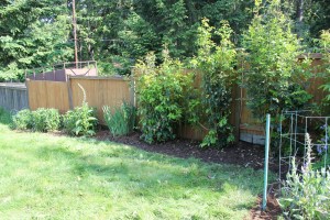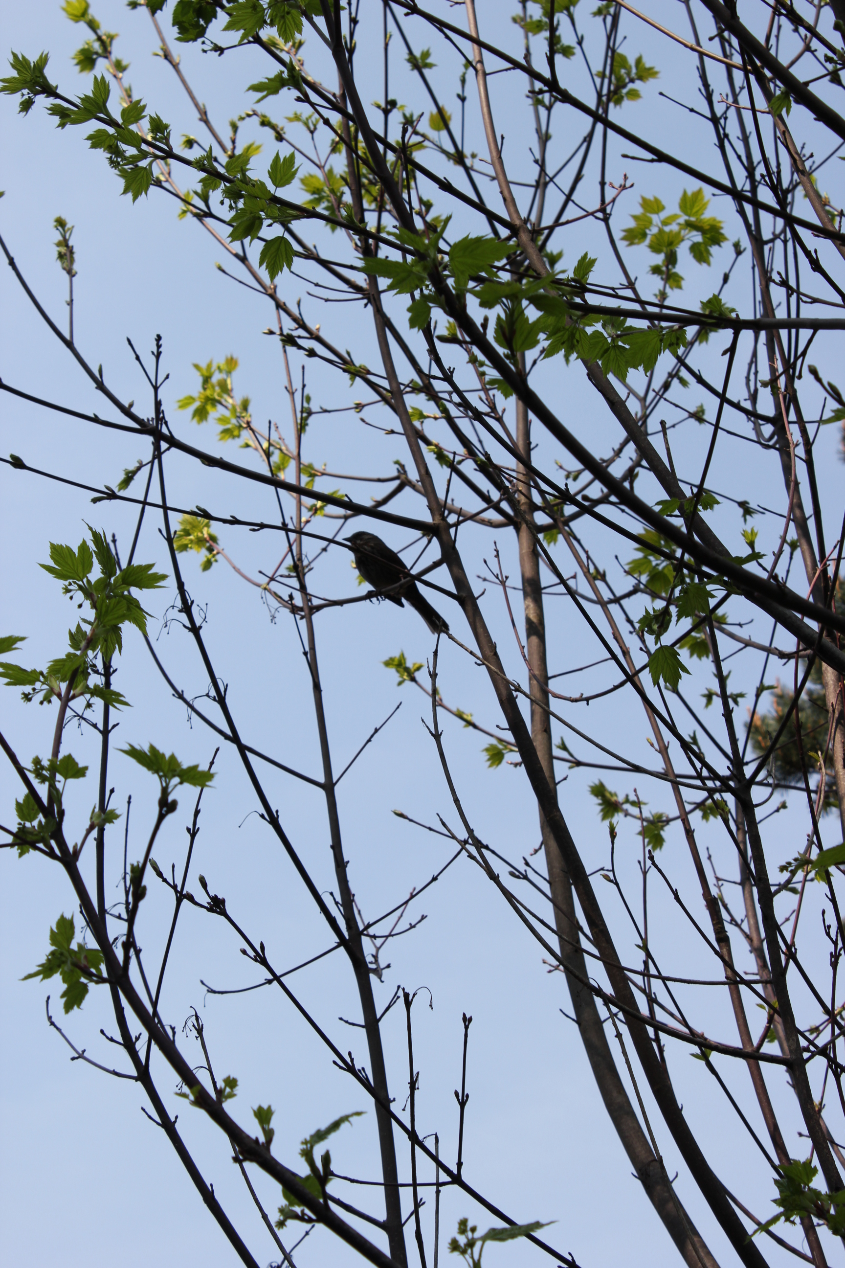 Birds. The crows built their nest just to the south of our fence. We’re certain they will fledge any day and our hope is that the little ones will not end up on the street below the nest or in our yard where the dog might find them. The juncos that nested on the ground beneath a peony have raised one fledgling. It now can make short flights and avoid the dog easily. The lesser goldfinches are building a second nest for the next brood of babies. We haven’t seen the wrens for a while but have heard them: hopefully they also raised some new babies. The secretive spotted towhee comes in daily for a bath in one of the many baths for birds.