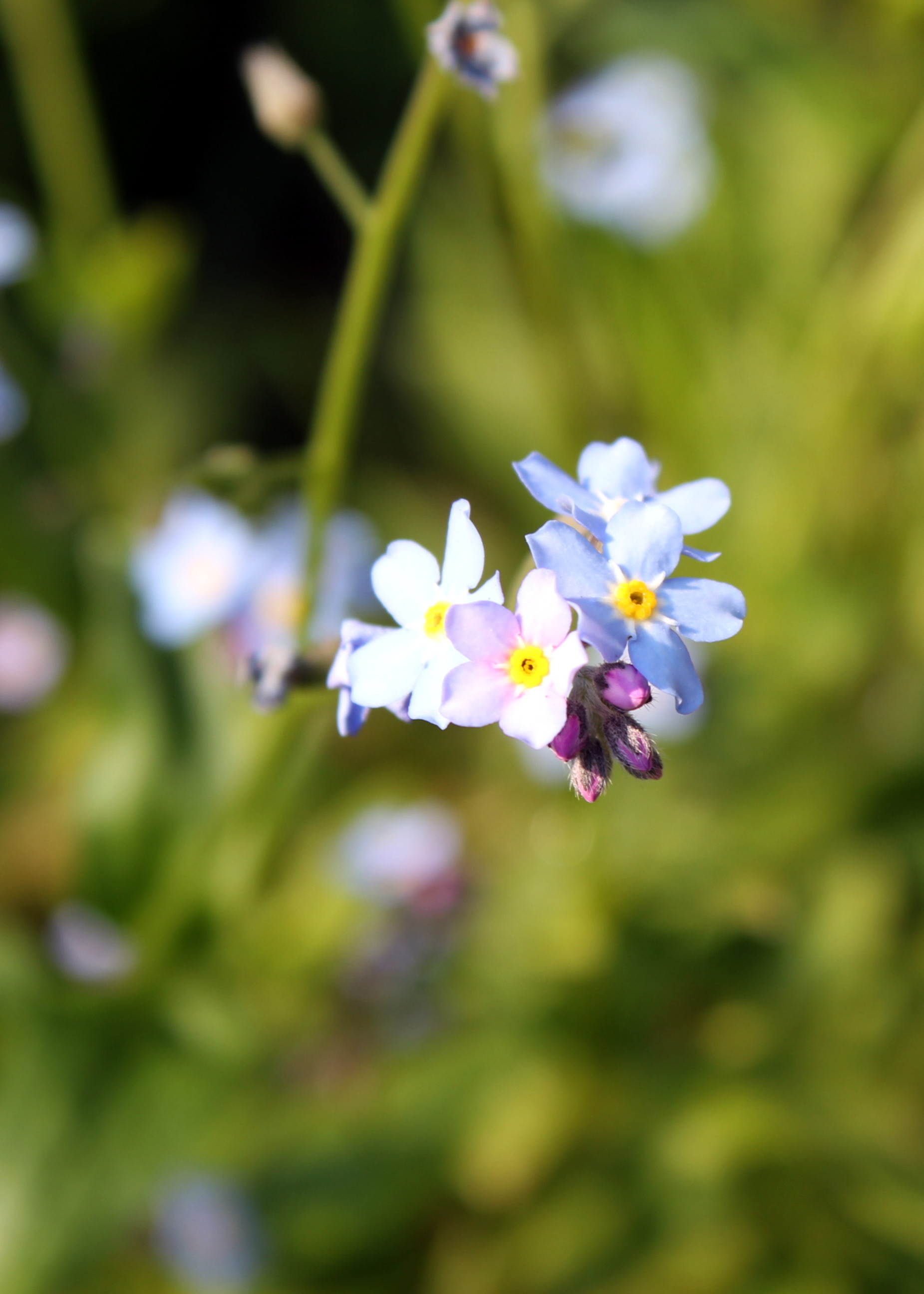 The tiny flowers as well are in their glory. The native forget-me-nots and the commercial ones, the inside-out flowers, the bishop’s weed, and the poached egg flowers (meadow foam) are all on display. The native camassia has bloomed and faded now. Heucheras, or coral bells, wave their tiny fronds of mini blooms in the breeze, along with the fringe cups. Speedwells have blossomed and faded along with the sweet woodruff.