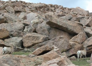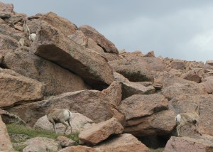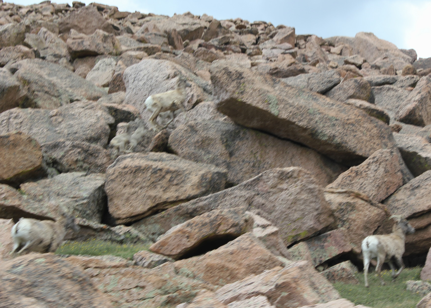 We managed to scatter a herd of Rocky Mountain Bighorn Sheep on the ascent, and being on the uphill side allowed me to get some great shots of their flight over the rocks.