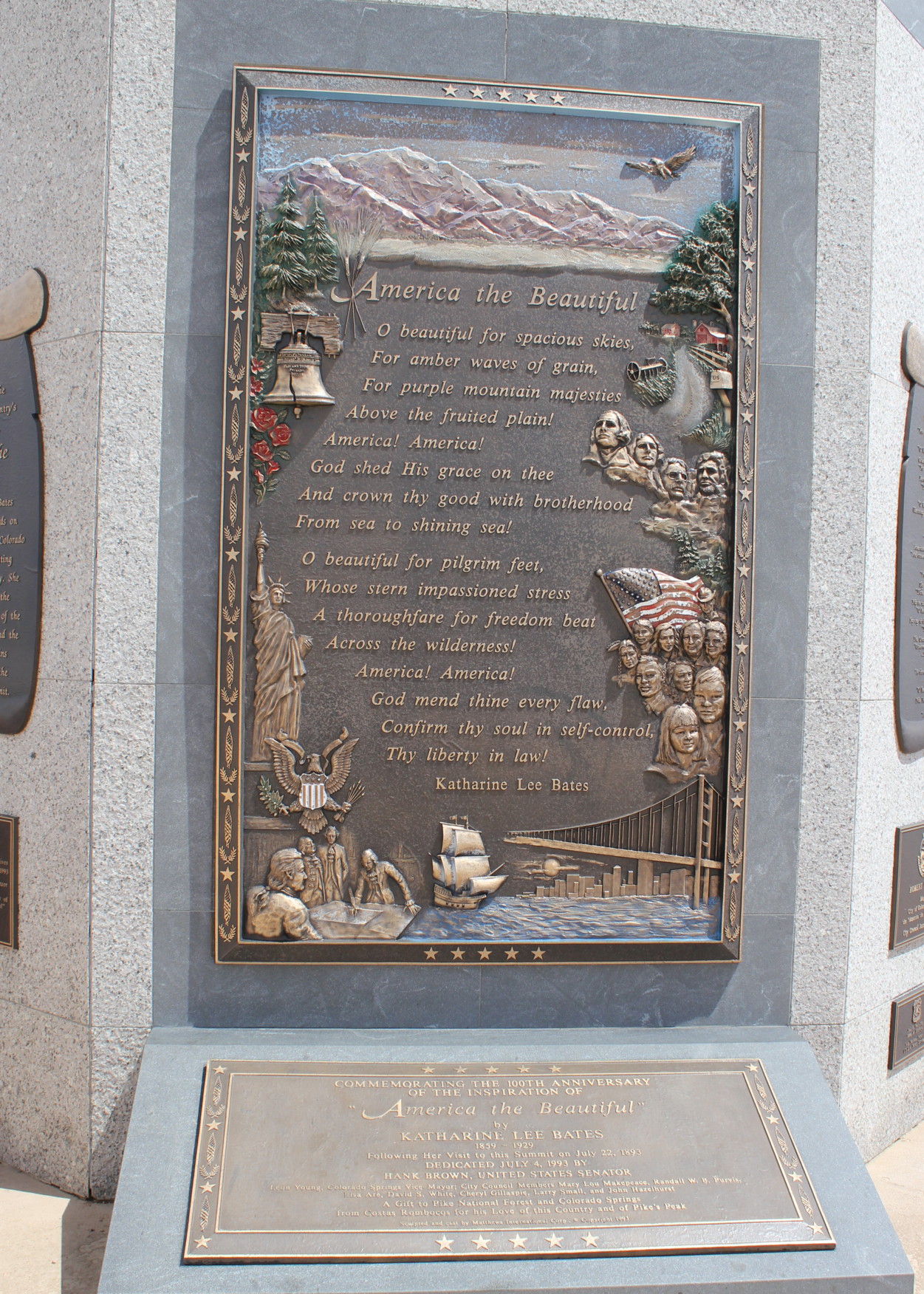 This is the only photo I took at the top. Katharine Lee Bates ascended Pike’s Peak in 1895 and was so inspired that she wrote a poem she titled “Pike’s Peak”. The poem was later set to music composed by Samuel A. Ward.