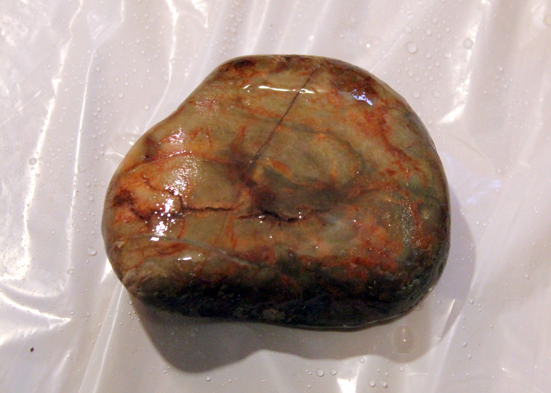 We were hiking and playing in the shadows of the fir trees when I spotted the rock in the water of the creek flowing down the hill. Pulled it out, looked for more (there were no more) and hauled it home. Took me forever to figure out that it was jasper. I need to label it so my kids know what it is when I am gone – and the story behind it.