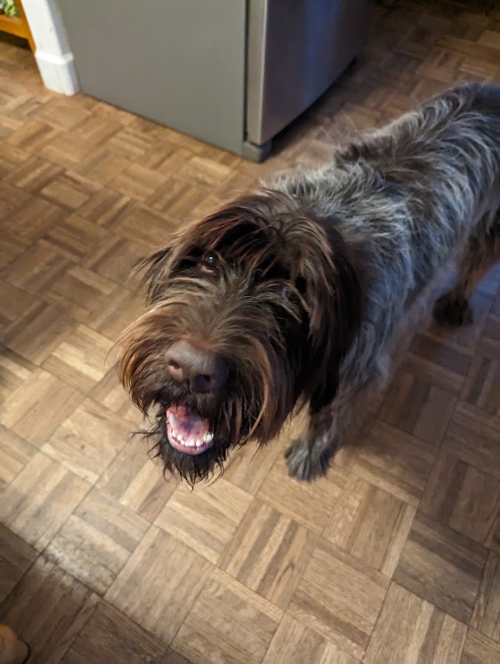I should mention that I live with a dog. Sometimes more than one dog, but always a dog. And dogs track in dust and mud and they shed. We’ve never owned a dog that didn’t shed although I know they exist. My husband’s birddogs do not fit into that niche of neat dogs to own. Birddogs are more like perpetual toddlers with very large feet that collect substantial amounts of mud between the toes. One birddog we owned had hair like a porcupine’s quills: she didn’t have long hair but what hair she did have went into the fabric of chairs and rugs, never to be pulled out again. She’s been gone for 16 years and we still have furniture with short white hairs stuck into the fabric. The longer haired dogs just shed copious amounts of fluff. (photo: the dog. Ruger.)