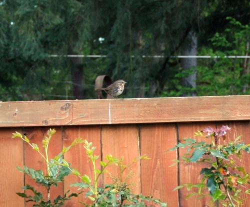 It is time to cut back the old fronds from all the sword ferns. They look sad and pitiful now, but once the fiddleheads get growing… I’m trying to encourage the ferns to fill in some of the blank shady places in the yard, like this section of Harvey-proof fence.