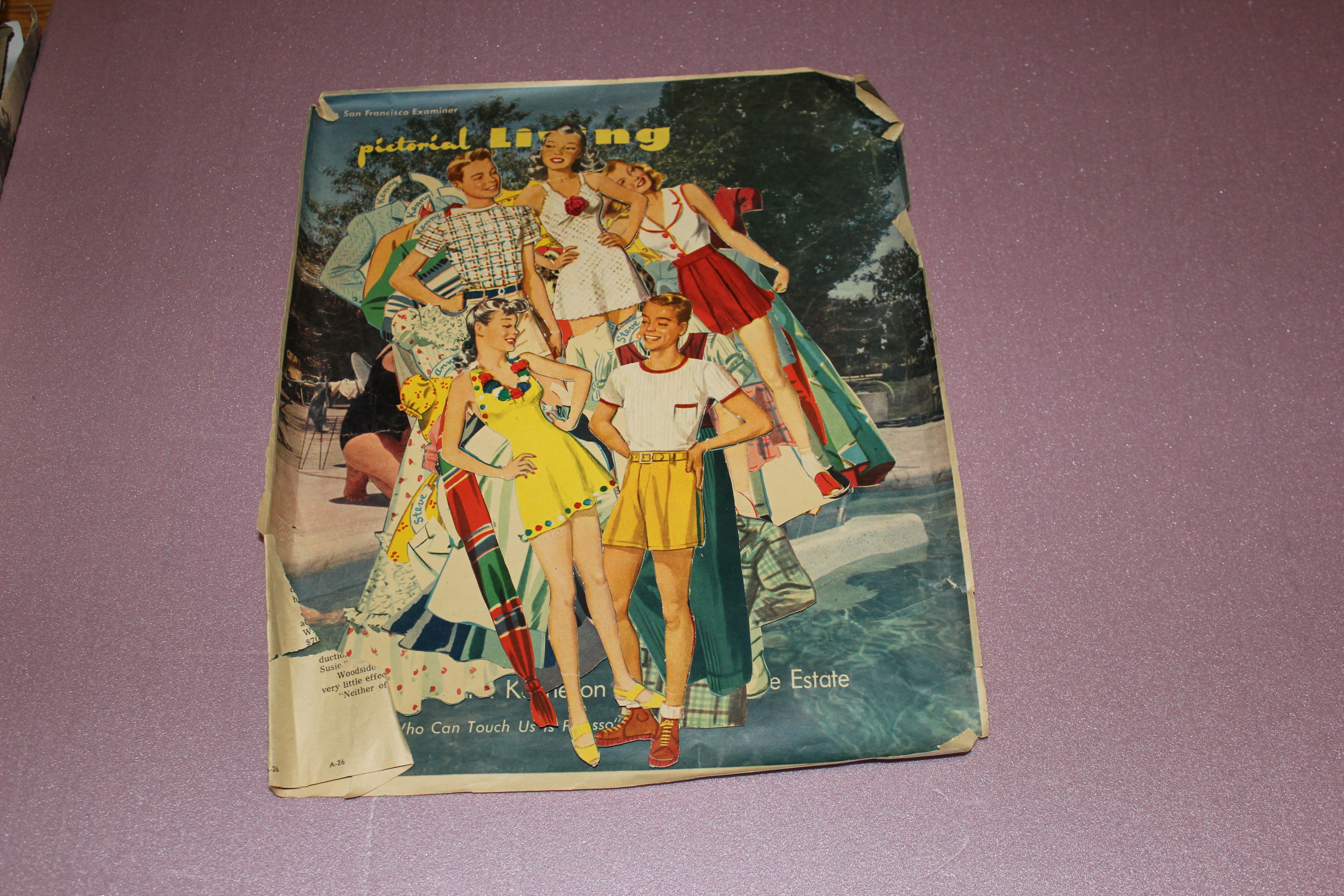 I asked myself several times why I was saving these paper dolls. The store bought sets are worthless on the retail market and are not even museum quality – they’re just the banged up remnants of a 14 year old girl’s childhood in the mid 1940’s. The magazine cut outs have a charming quality to them and are better preserved, but they really have no monetary value, either.