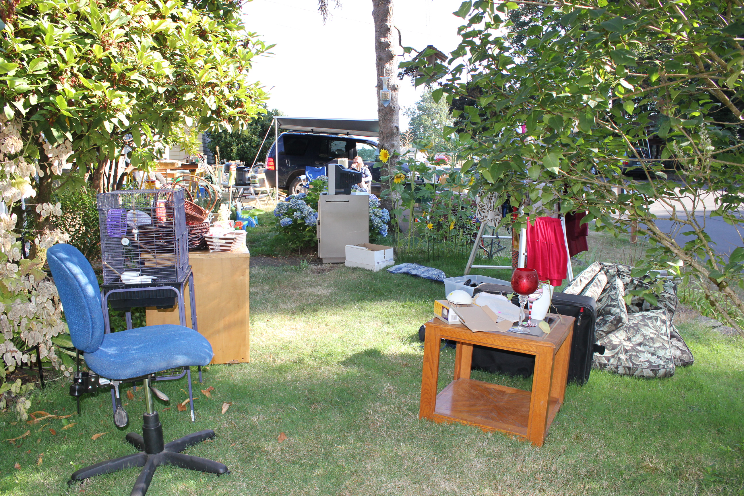 A car pulled up to the mailbox and our neighbor leaned out of his window. “Hey… you really have a lot of junk!” He came by later when he was walking his dog and bought some items from us in the dark. $20.